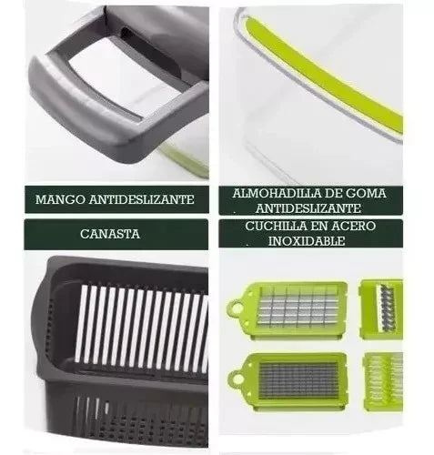 CORTADOR DE VERDADURAS MULTIFUNCIONAL -AYUDANTE DE COCINA EN ACERO INOXIDABLE DE ALTA RESISTENCIATu ayudante de cocina ideal, por el cual ya no tendrás inconvenientes al momento de cocinar, el conjunto de cuchillas multifuncionales en acero inoxidable tiene todo lo necesario para cortar, rebanar, rallar, y rebanar! Picar las cebollas, calabacines, pimientos, apio, tomates, huevos duros, queso, frutas y luego ver como la transferencia de ingredientes pasa instantáneamente a la superficie de corte al recipiente de abajo. No hay problemas, y sin ensuciar! más agradable con el Plus ya no es un problema ya que tiene todo en un sistema práctico! Sencillo y ahorro de espacio como se pone.Cortador de verduras, 15 en 1,cortadormultifuncional demandolina cortador yrallador de alimentoscortador de verduras